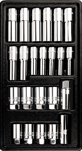 Набор длинных головок 3/8" и 1/2", свечных головок 23 предмета
