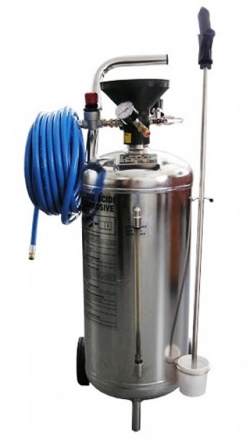 Для работы в бак заливается готовый, то есть разведенный, химический состав, после этого пенный раствор с помощью пистолета наносится на обрабатываемую поверхность.
