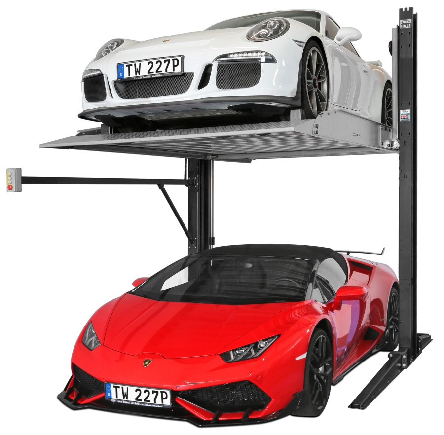 Двухуровневый парковочный подъемник с двумя стойками (парковочная платформа) DK-227EP.2.7T для автомобилей.