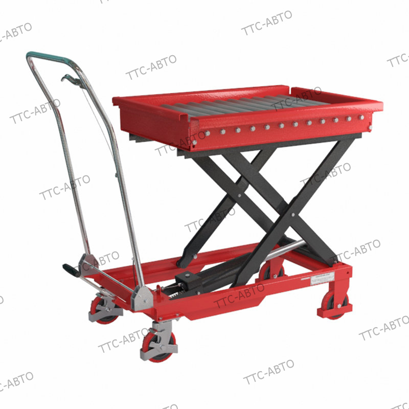 Тележка-подъемник имеет порошковое покрытие, что позволяет использовать её в аккумуляторных мастерских для перемещения и подъема аккумуляторных батарей. Платформа состоит из роликов.