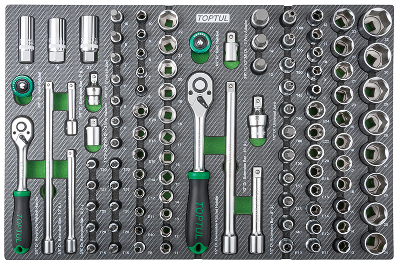 Набор головок и аксессуаров 3/8" и 1/2" 6-гр., 104 предмета в мягком ложементе (D) TOPTUL GEDA429 купить в Челябинске и других городах России