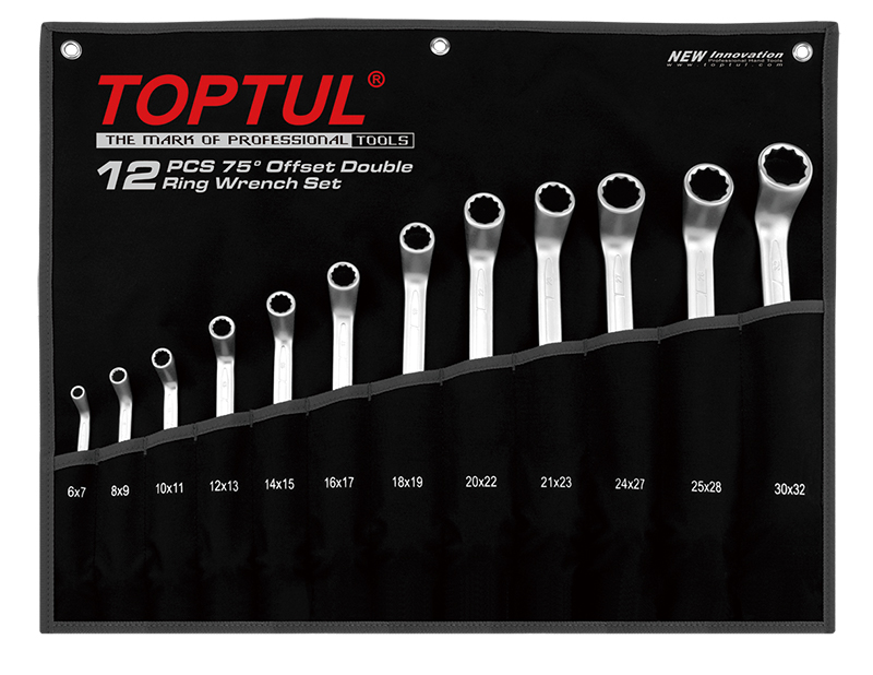 Набор ключей накидых 75º 6-32 мм, 12 предметов на полотне TOPTUL GPAI1202 купить в Челябинске и других городах России